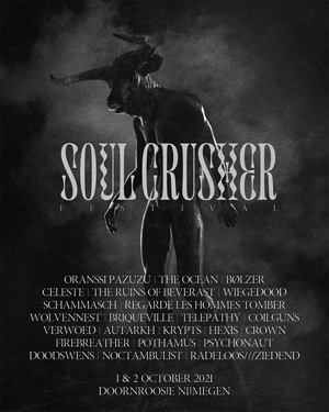 Soulcrusher is voor de liefhebber van zwartgallige zielknijpende klere-herrie. Pak ‘m beet muziek voor Roadburn-festivalgangers. Dit jaar worden de meeste festivals voor de tweede keer in de prullenbak gegooid, al dan niet door corona of de maatregelen die zijn genomen om dat virus af te stoppen. Met de CoronaCheck-app bij de hand gaat de inmiddels vijfde editie van het indoorfestival in Doornroosje toch gewoon door en er is echt niemand die met zo’n check moeite heeft. Laten we ook niet zeuren, de hele zomer werden al concerten georganiseerd met de CoronaCheck-app door o.a. Doornroosje (laten we het dus geen coronapas noemen) en daar hoorde je ook niemand over. Weer eens een festival dus en dat is optimaal genieten van oude geneugten, al hadden we ook al even aan de festivalsfeer mogen proeven door een toffe alternatieve versie van het Valkhof Festival in het Openluchttheater de Goffert en Doornroosje. Maar nu dus echt zonder anderhalve meter en op driekwart van de capaciteit.